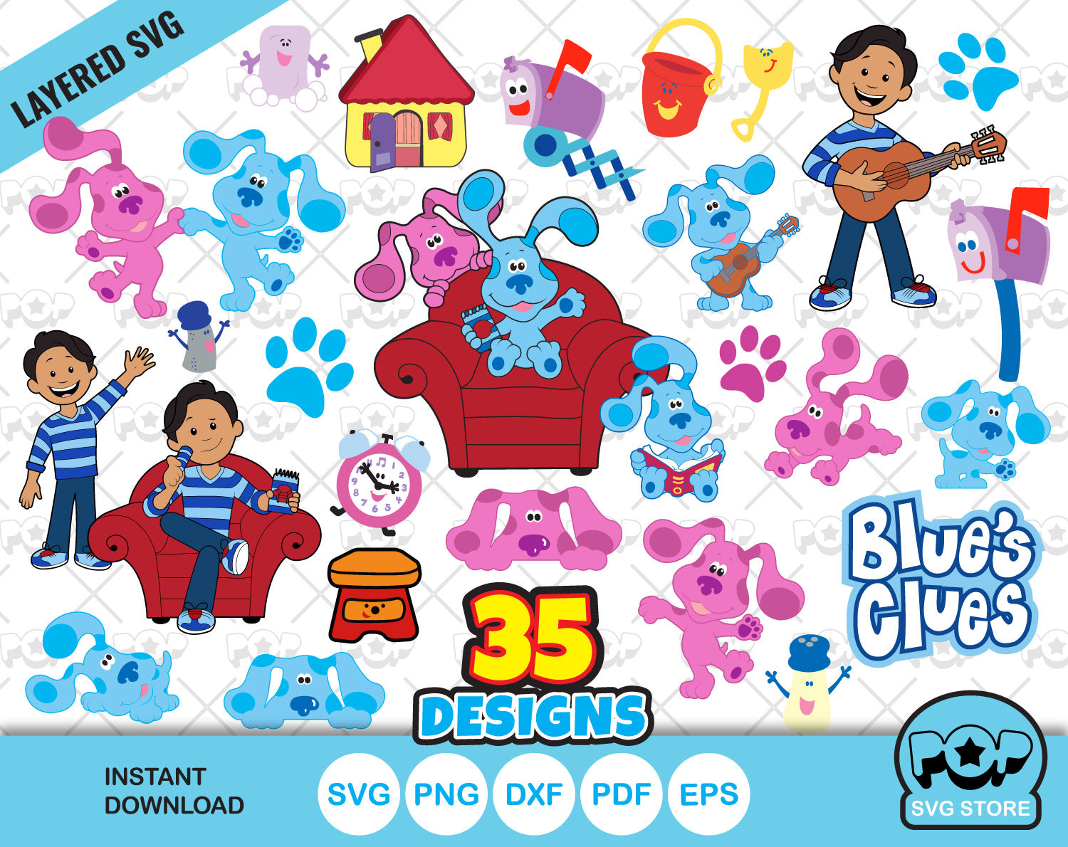 Blue's Clues SVG clipart bundle, Blues Clues SVG cutting files for cricut silhouette, SVG, PNG, DXF, Instant Download