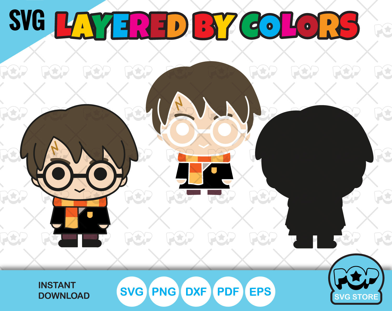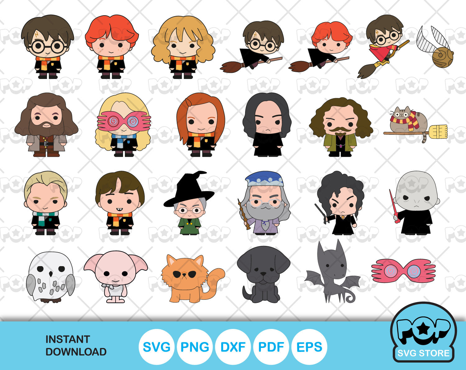 Chibi Harry Potter clipart set, Harry Potter SVG cut files for Cricut / Silhouette, PNG, DXF, instant download